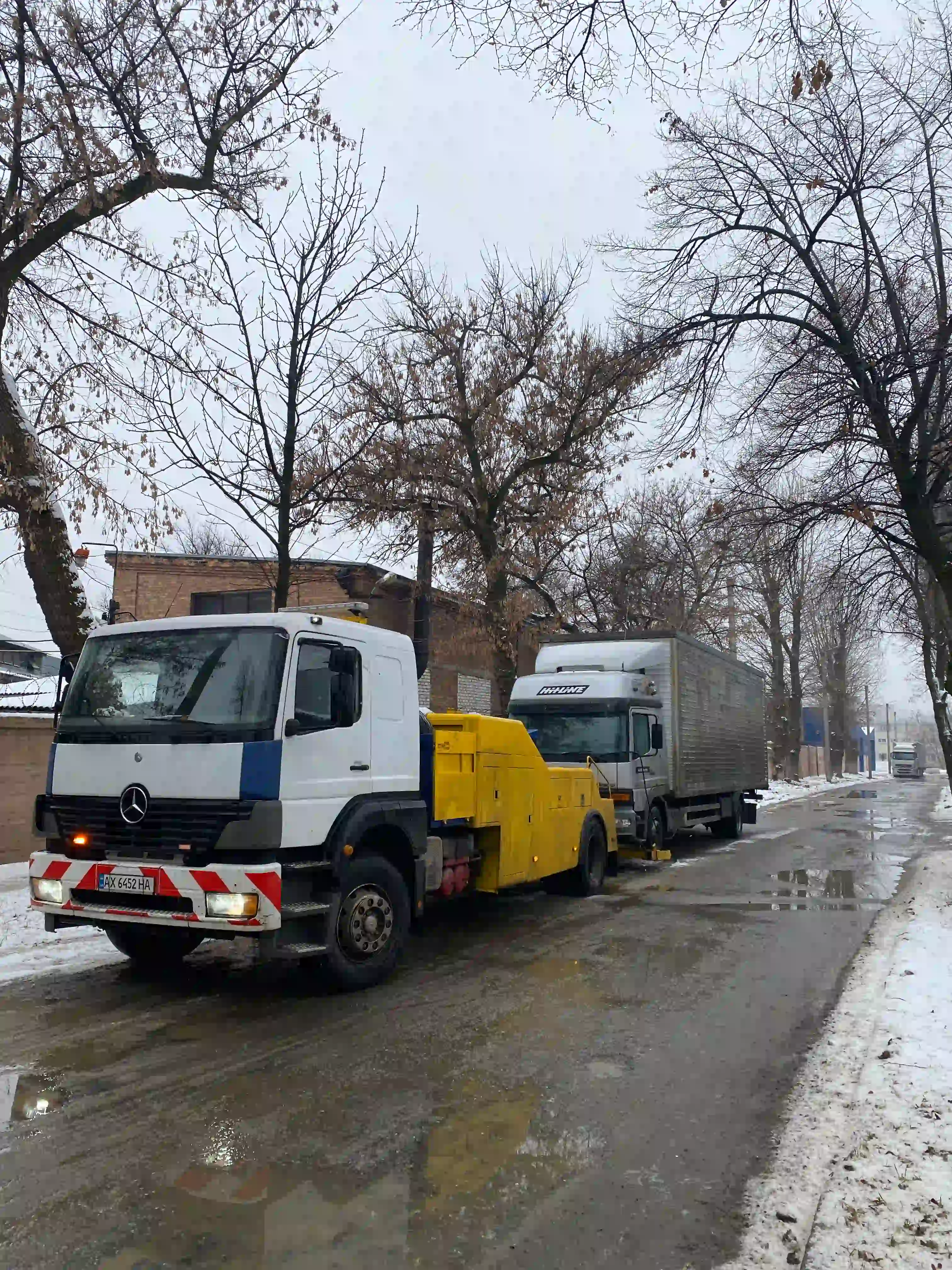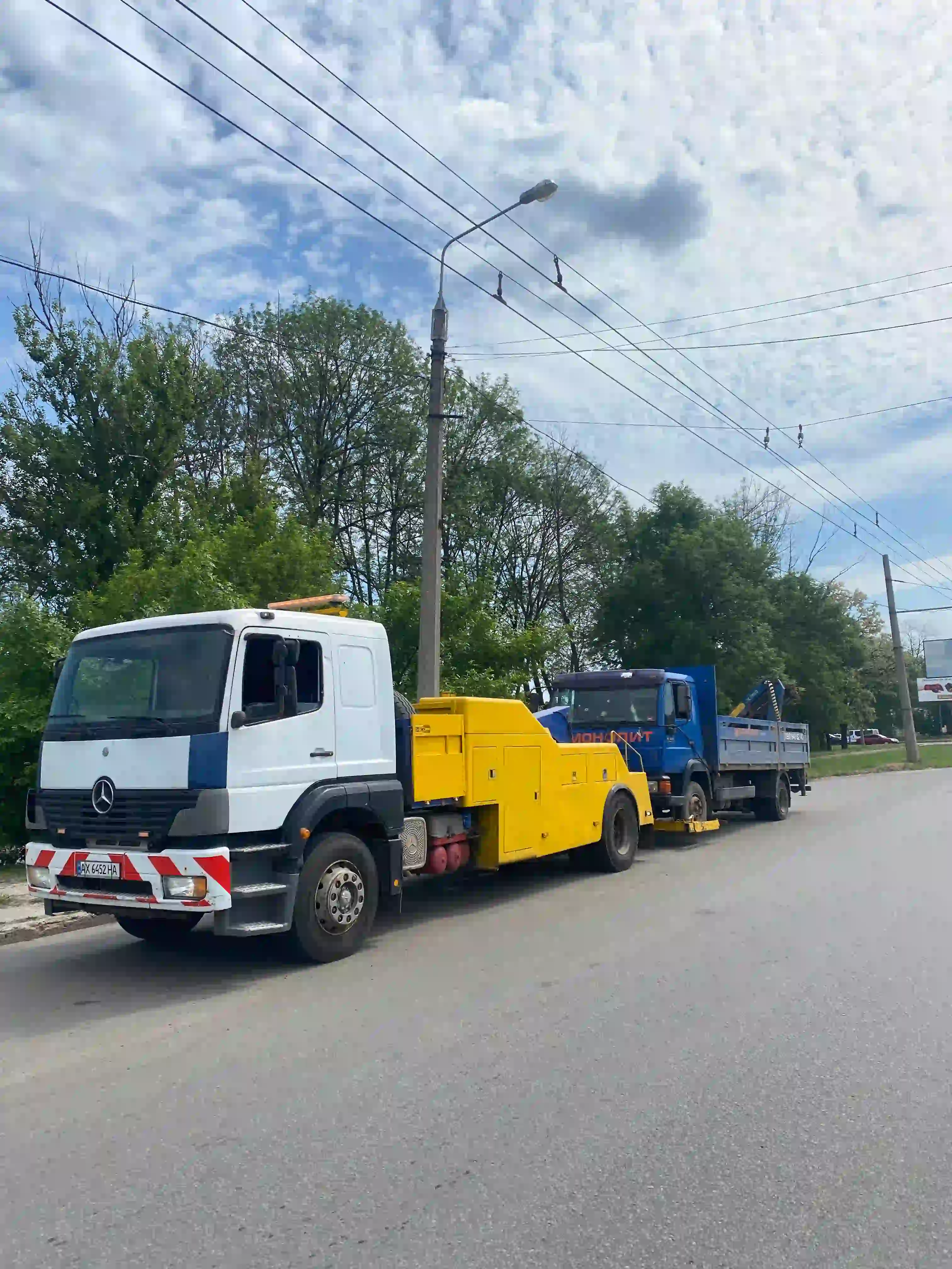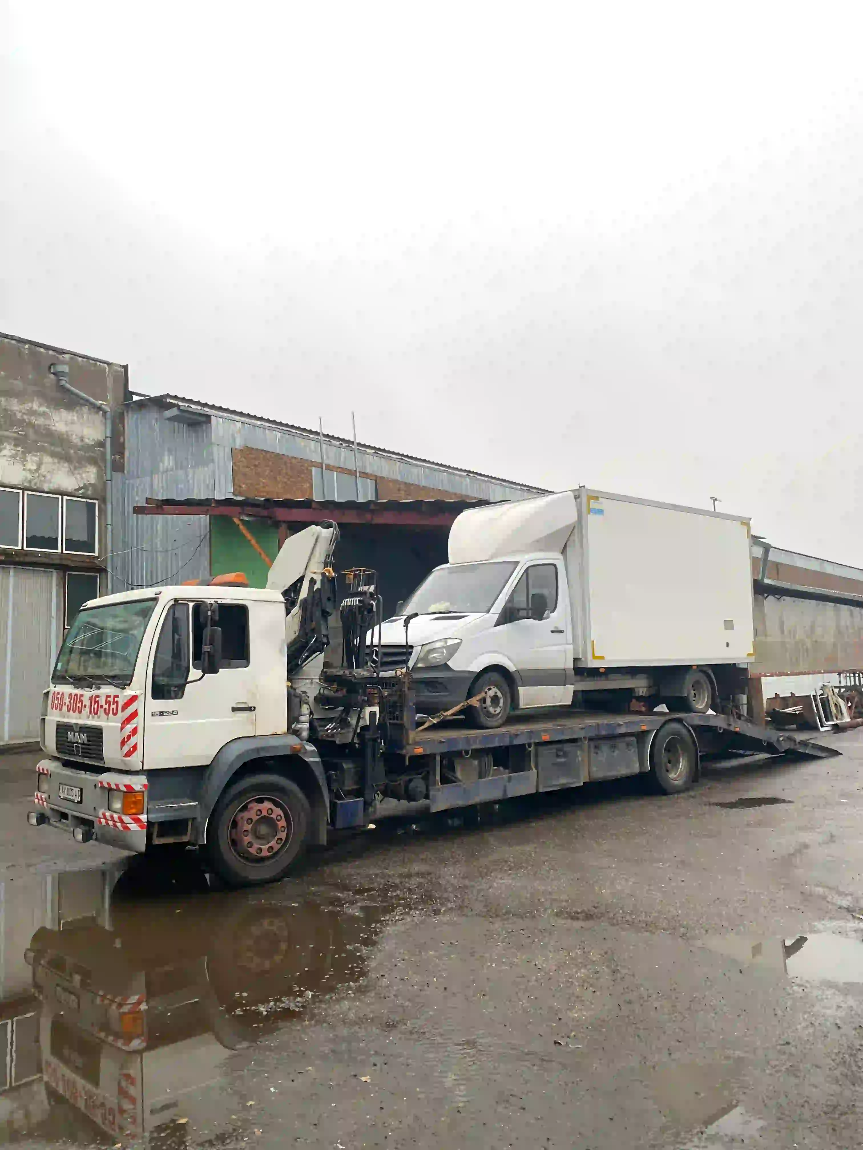 2. Вантажний евакуатор з повним завантаженням, за допомогою лебідки або крана-маніпулятора.